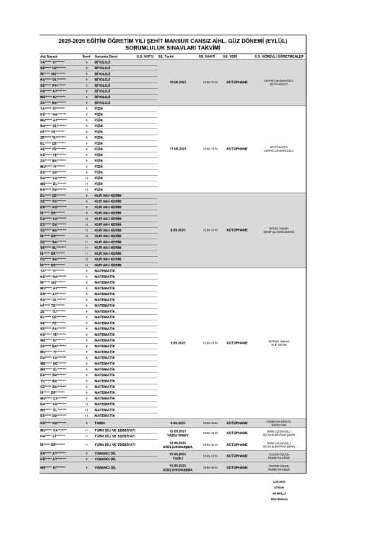 EYLÜL (GÜZ) 2025 SORUMLULUK SINAV TAKVİMİ YAYIMLANDI